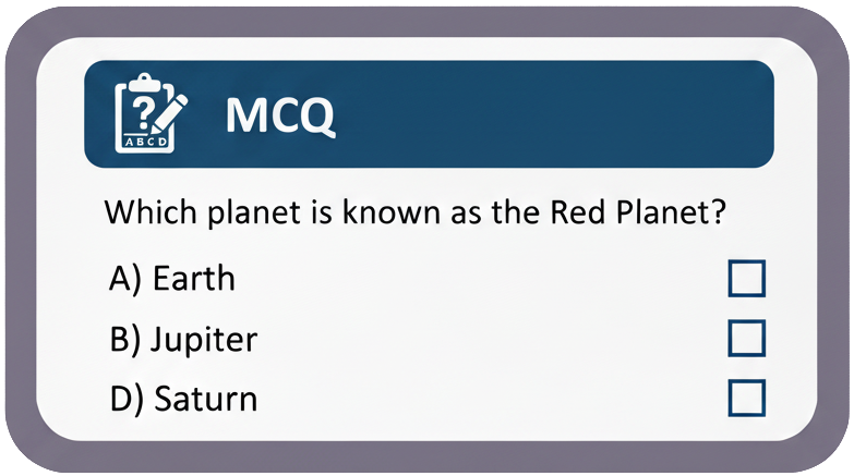 Students (5th–10th) can practice Maths, Science, English, Hindi, and Social Studies in various formats: fill in the blanks, true/false, match, short answers, and image-based.